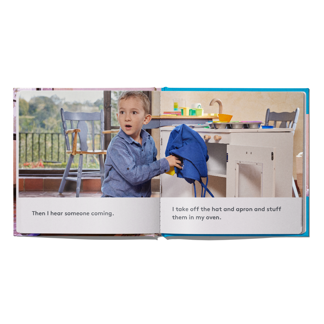 ‘I Told a Lie’ features real photos and a relatable story of Andrew taking his sister’s hat and apron without asking. When confronted, he has a big decision to make – lie or tell the truth.