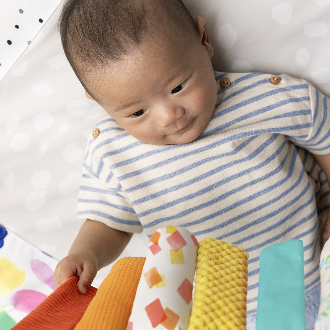 The Sensory Strands make a perfect sensory toy add-on to The Play Gym, giving your baby even more to discover: gripping, reaching, peek-a-boo, textures, and new sensations.