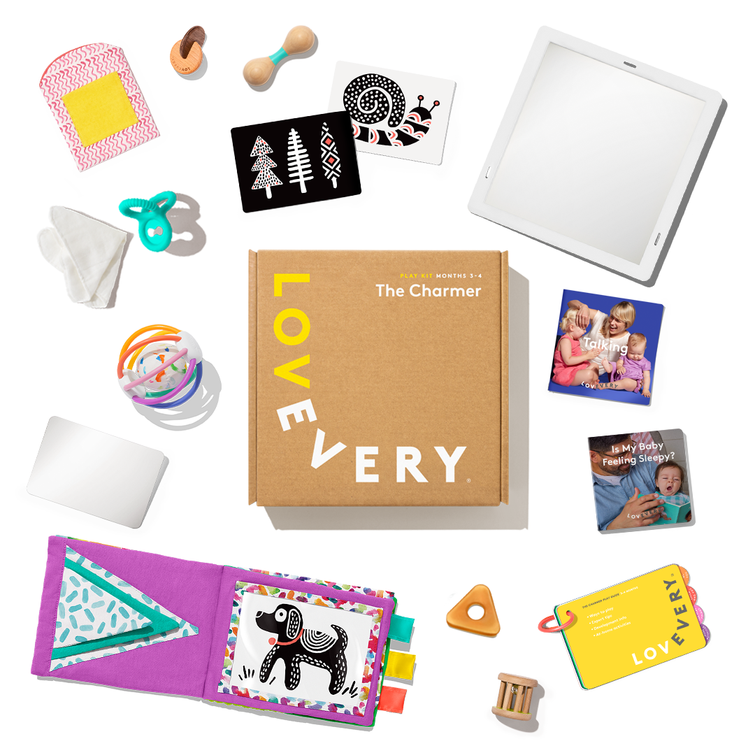 Your baby may start to recognize your face—cooing at you, smiling, and delighting everyone they meet. This Play Kit is designed to let your baby explore with their mouth, eyes, and hands as their personality emerges and their social awareness grows.