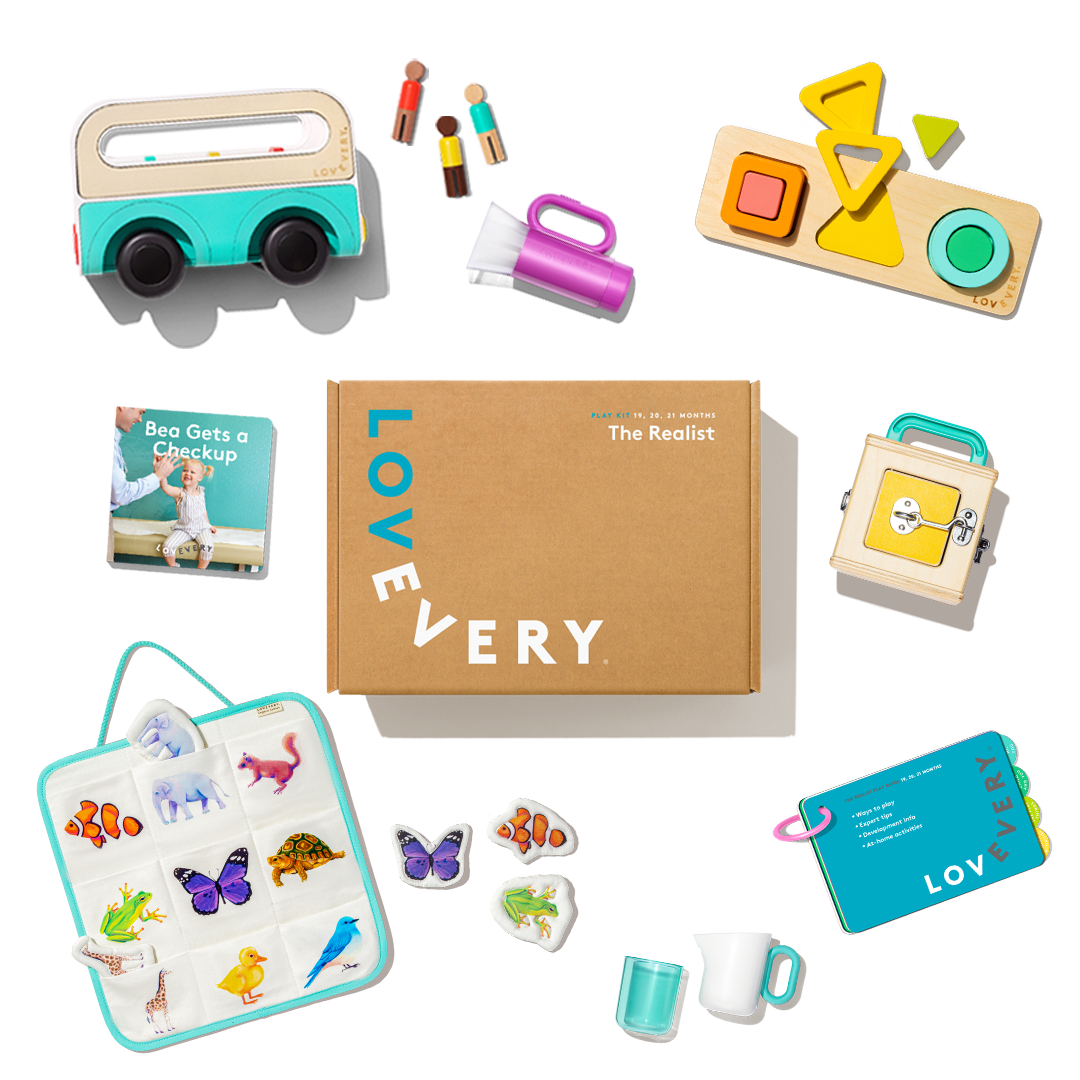 Your toddler probably wants to participate in real life situations, routines, and rituals. This Play Kit helps develop their senses and understanding of what things are and how they work.