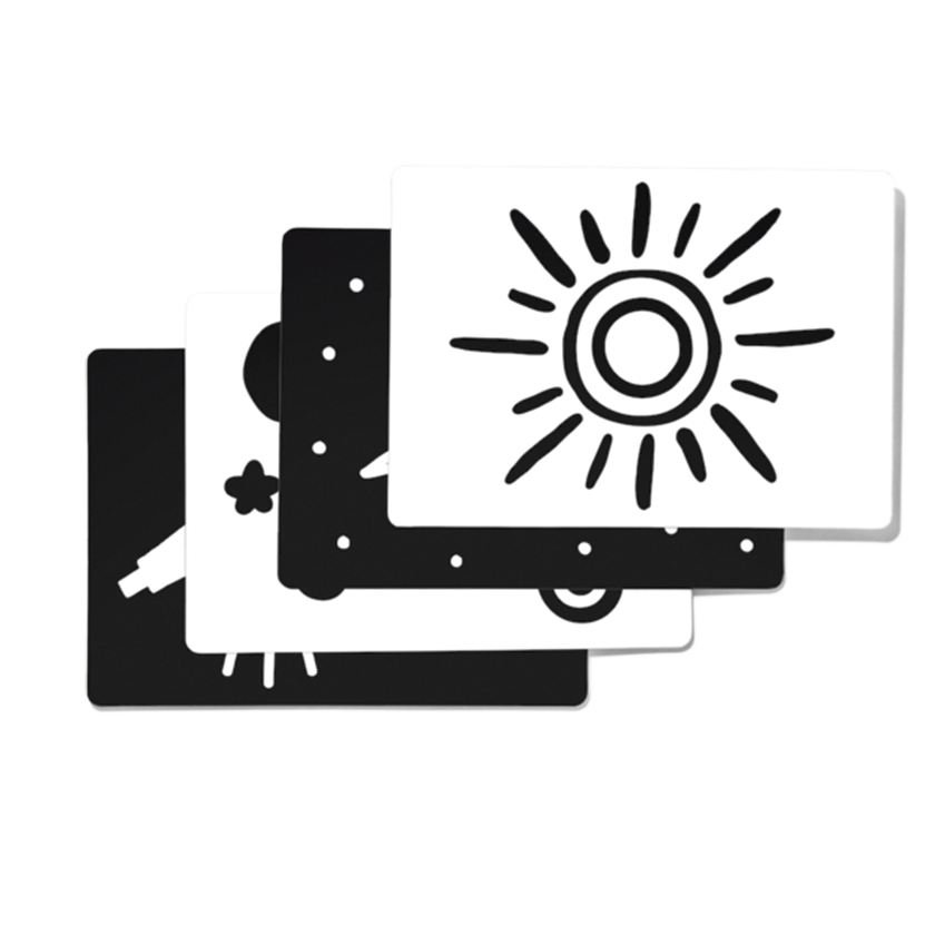 High-contrast images with varying pattern complexity help develop and strengthen your baby’s eyesight, while playful themes provide fun ways to build their vocabulary. These black and white cards are perfect on the go or as expansion sets to your favorite Lovevery playthings with cardholders.