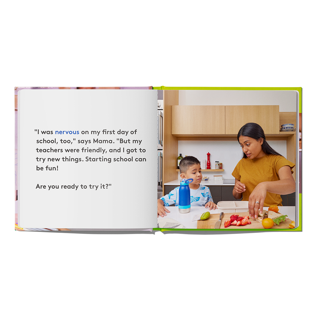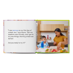 Prepare your child for the excitement and nerves that come with their first day at a new school. Includes an interactive song that helps them get through the day.