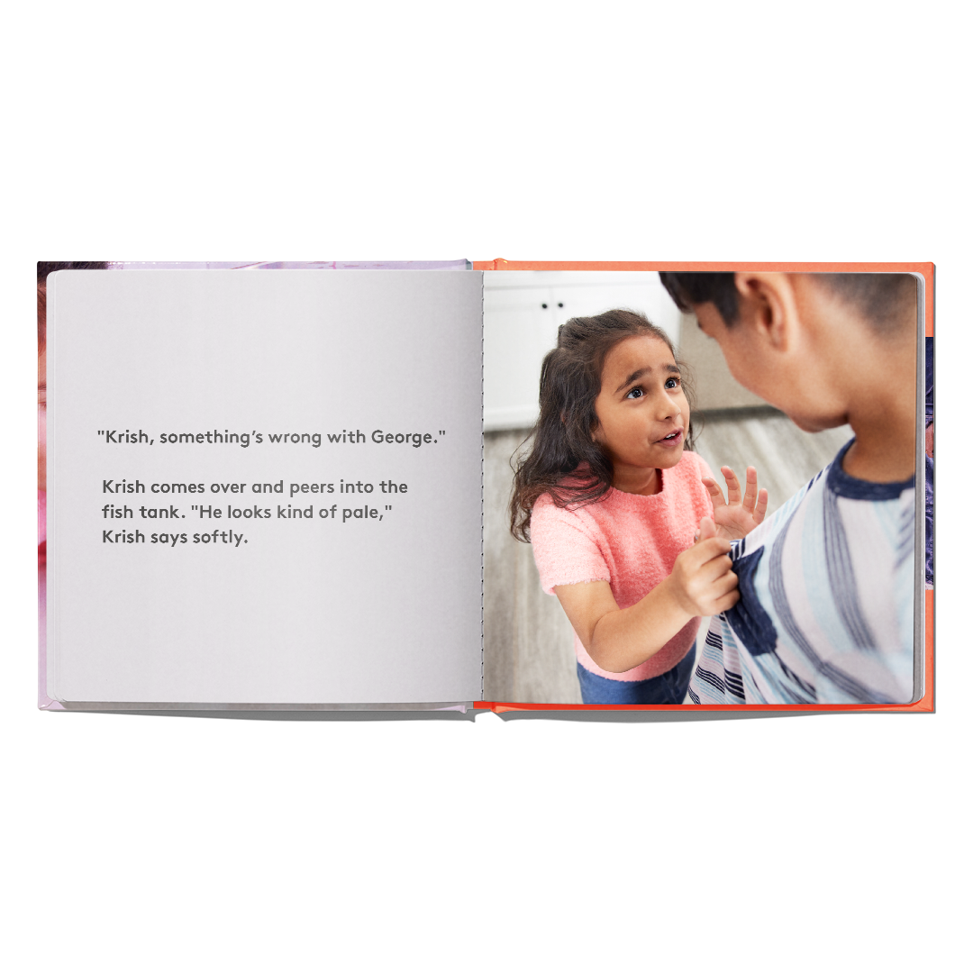 ‘Something’s Wrong with George’ features real photos and a relatable story about a child grieving the loss of her pet. Explaining the concept of death – and letting your child know it’s okay to feel the emotions that come with it – helps them learn to cope in healthy ways.