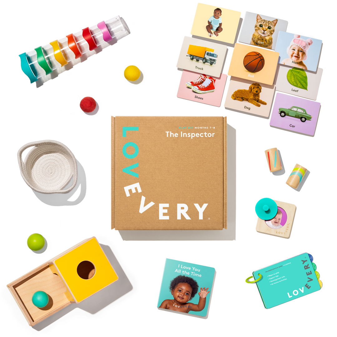 Your baby is more aware of everything around them and fascinated with details. This Play Kit makes the most of your baby’s natural curiosity about how things work with opportunities to explore texture, practice nesting and stacking, and learn about object permanence.