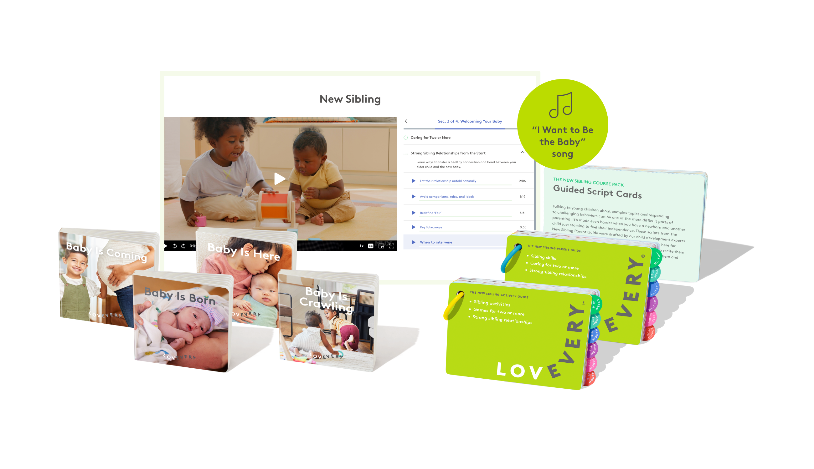 From when you first learn your family is growing, through the new sibling’s first birthday, This Course Pack includes tools that help your older child process their feelings, learn to safely play with the new baby, and understand ways they can help. You’ll also gain valuable insight into how to care for multiple children and their different needs.